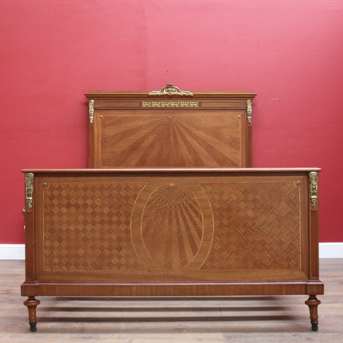 Antique French Walnut Double Bed with Gilt Bronze Mounts and Sunray Pattern. B12165