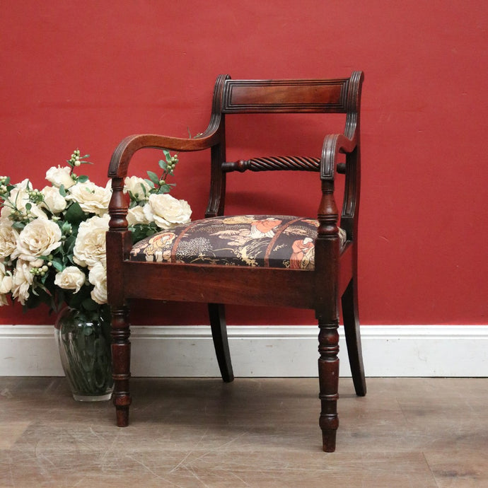 Antique English Mahogany Armchair with Japanese-Themed Upholstery. B12628