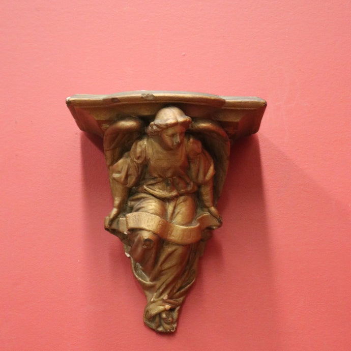 Antique Gilt Plaster Wall Shelf with Angel Holding Ribbon – Ready to Hang. B12401