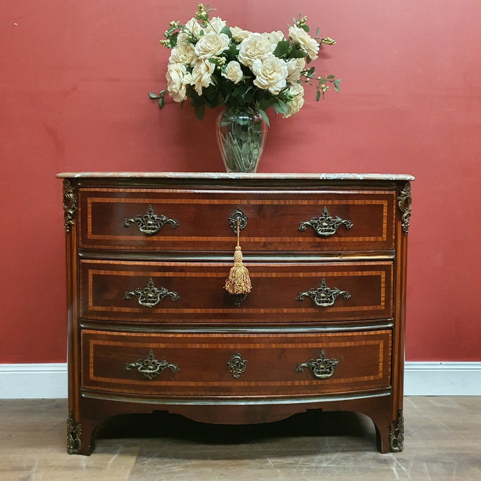 x SOLD Antique French mahogany Three Drawer Marble Top Chest of Drawers with Brass Detail. B12162