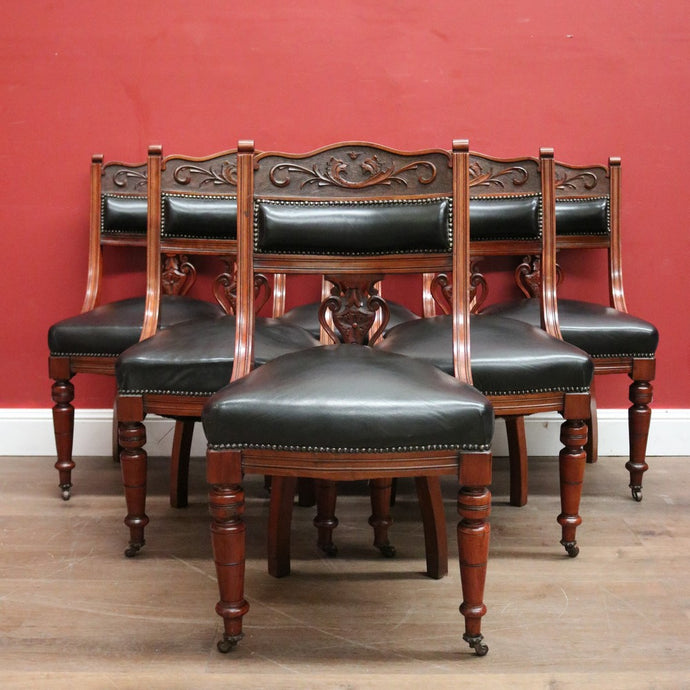 x SOLD A Set of Six and English Walnut and Black Leather Dining or Kitchen Chairs. B12344