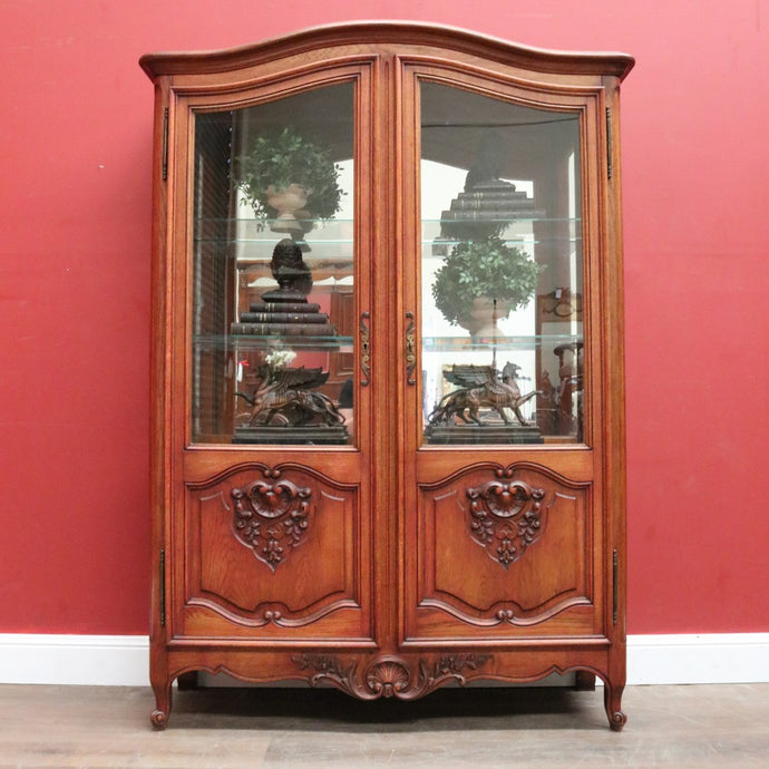 x SOLD Antique French Oak Bookcase, Eight Drawer Display Cabinet or Cupboard, Glass Doors. B12192