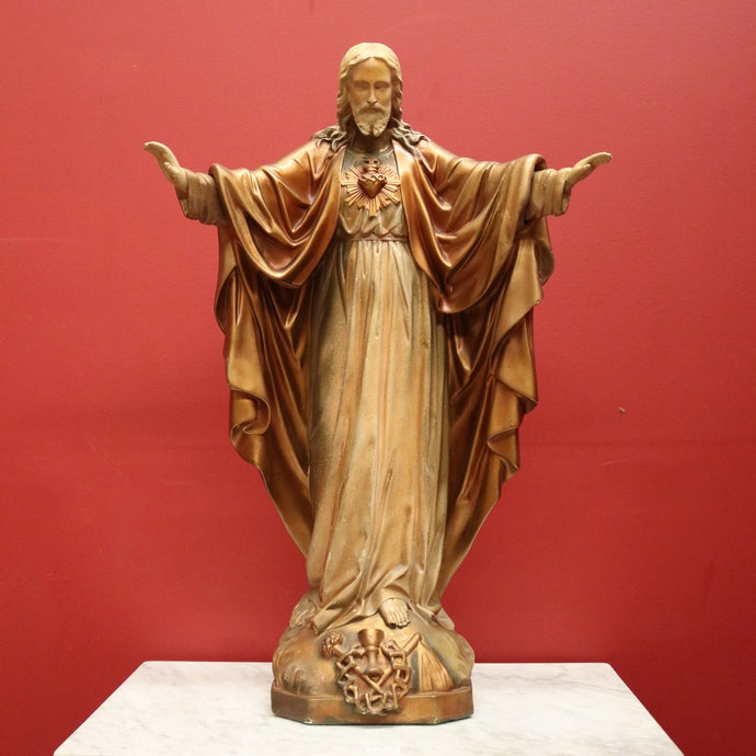 x SOLD A large Gilt Tone Sacred Heart of Jesus Statue, Jesus with out stretched arm, Christ B11521