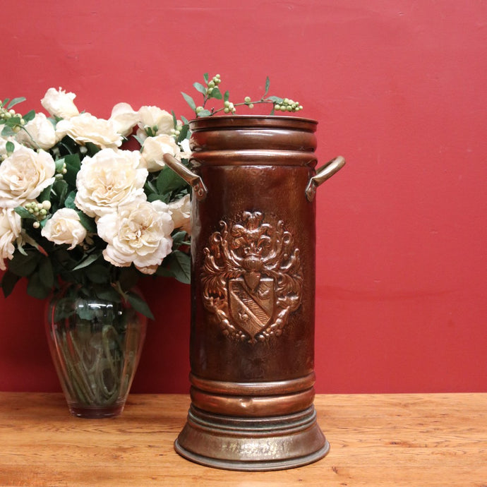 x SOLD Antique French Brass and Copper Umbrella Holder or Stand, also for Walking Sticks or Canes. B11872