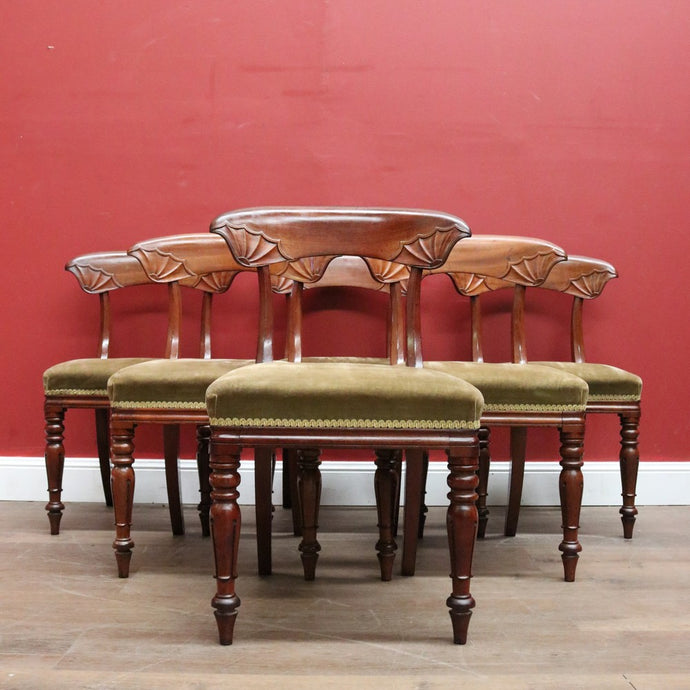 x SOLD Set of 6 Antique English Mahogany and Olive Velvet Dining or Kitchen Chairs, circa 1860 B12061