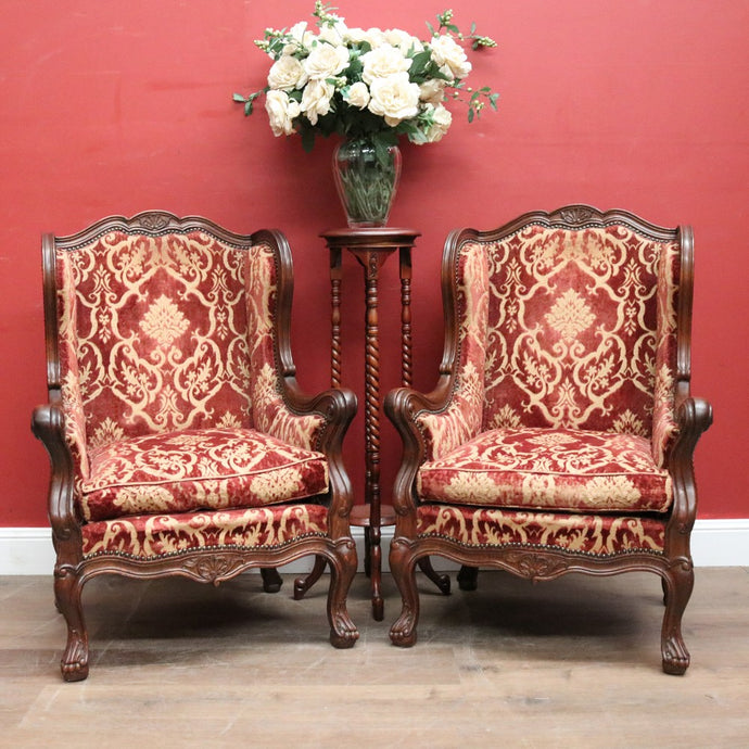 x SOLD A Pair of Antique French Wing Back Armchairs with Down/Feather Cushions. B12058