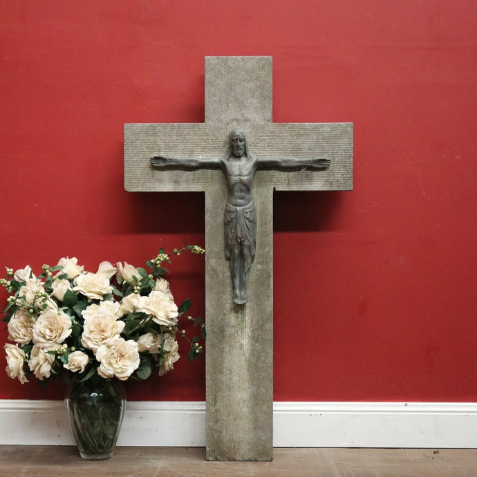 x SOLD Bluestone Cross or Crucifix with Bronze Statue of Jesus. B12119