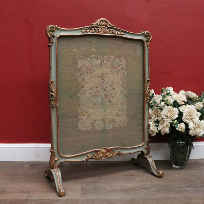 x SOLD Antique French Fire Screen, Hand-made Tapestry Insert - French Grey-Green and Gilt Finish. B12195