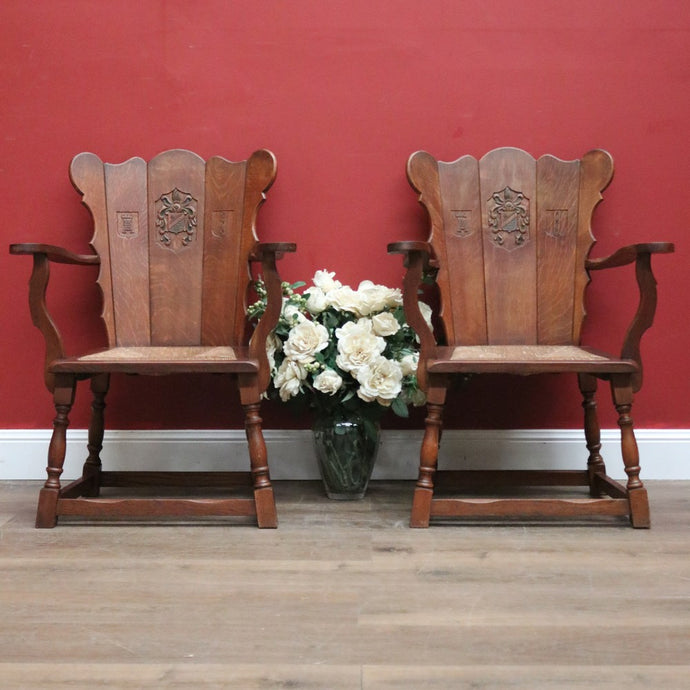x SOLD Set of Two Armchairs, Pair of Antique French Oak Heraldic Chairs, Coat of Arms B11046