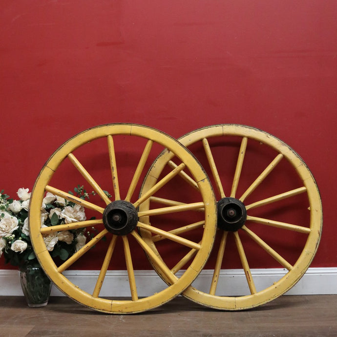 x SOLD A Pair of Antique French Wagon or Cart Wheels, Steel and Timber and a Weathered Charm. B11899