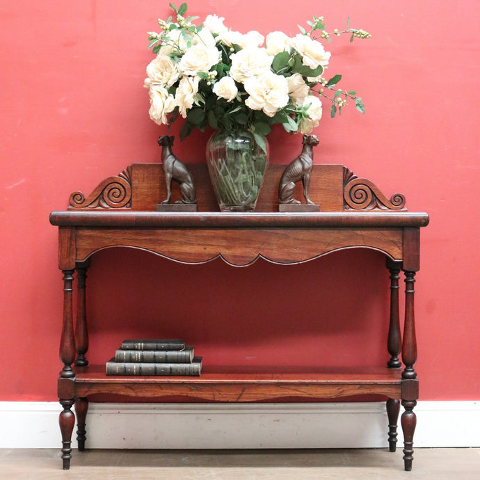 x SOLD Colonial Australian Cedar Console Table, Tier to the base, with a Thomas Hope scroll backboard. B11977
