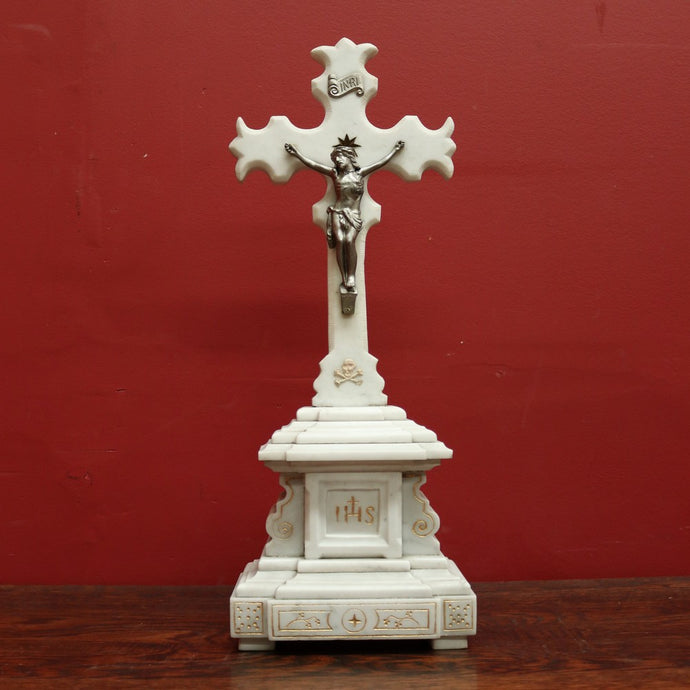 x SOLD Antique French Marble Crucifix with Gilt Detail on the Cross, Jesus on the Cross. B11586