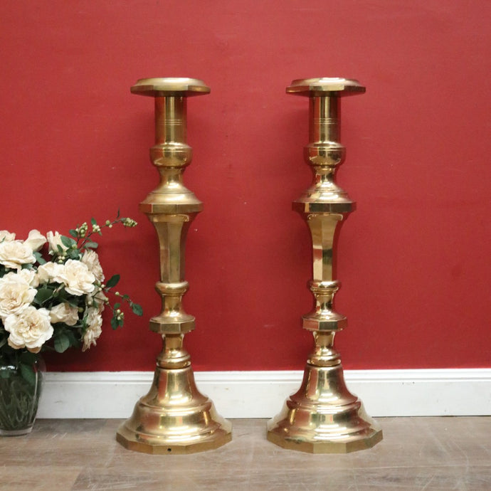 x SOLD Pair of Antique French Gothic Church Brass Gothic Candlestick Holders. B12109