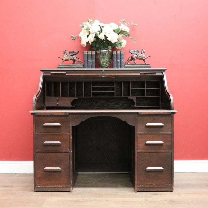x SOLD Antique English Roll-top Desk, Office Desk, Home Office Desk, Drawers. B11970