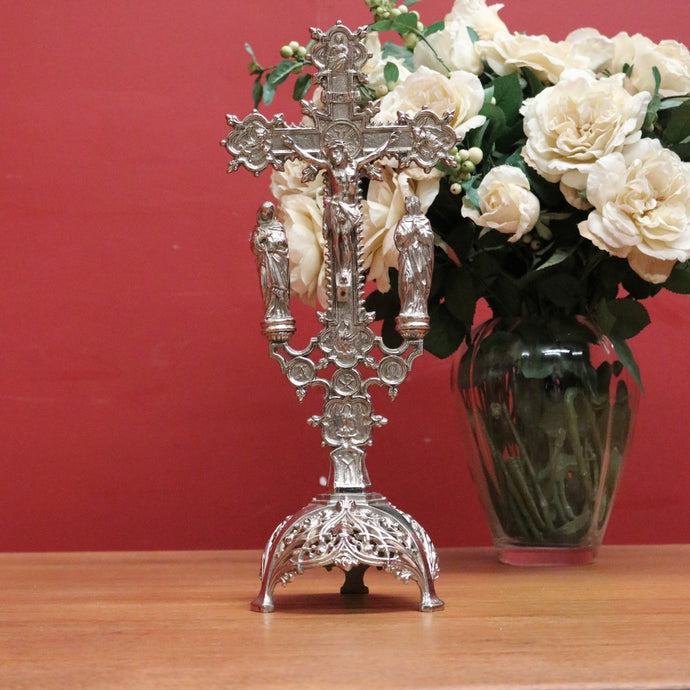 x SOLD Antique French Crucifix, Silver Plate Home Worship Christ on Cross. Religion. B11397