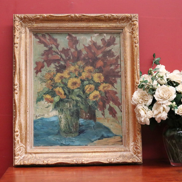 x SOLD Antique French Framed Oil on Canvas still Life, Flowers in a Vase in a Gilt Frame. Signed. B11638