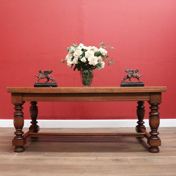 x SOLD Antique French Dining Table with Two Extension Leaves and Stretcher Base. B11818