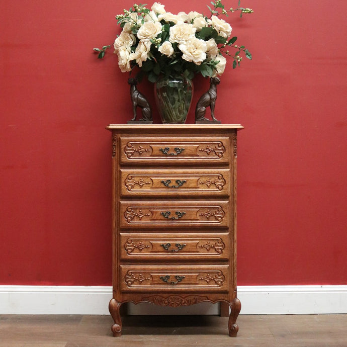 x SOLD French Oak and Brass Handle Five (5) Drawer Chest of Drawers or Lingerie Chest. B11870