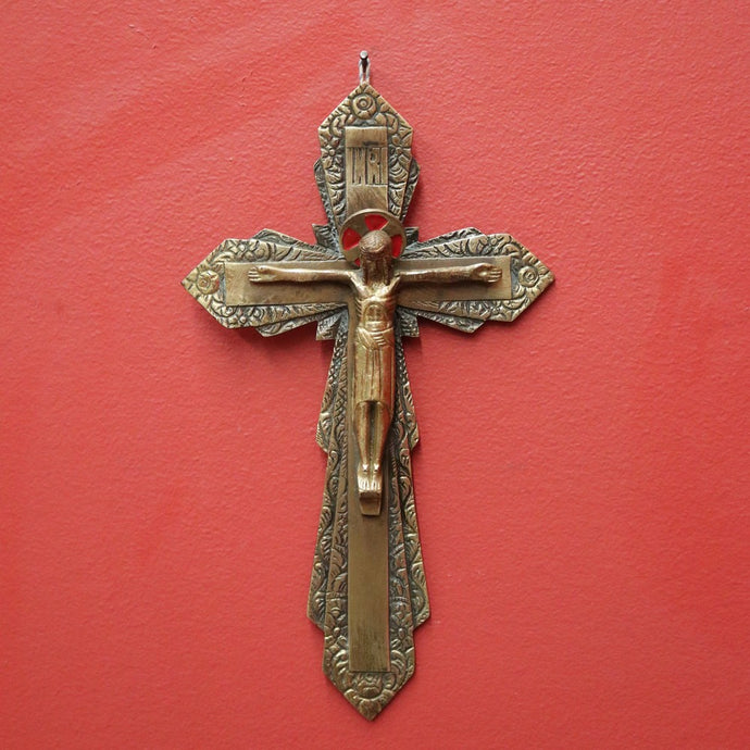 x SOLD Antique French Brass Wall Hanging Crucifix, Christ on the Cross, Home Worship. B11606