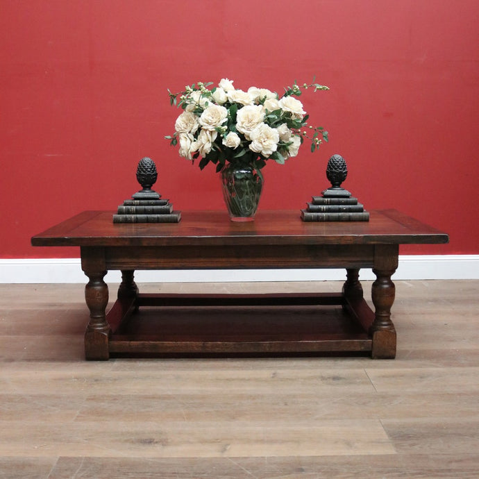 x SOLD Vintage French Oak Coffee Table, Low Line Table with Ebony Inlay, Stretcher Base. B11390