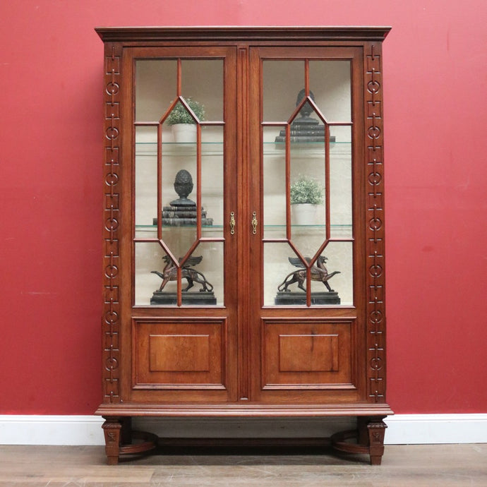 x SOLD Antique French Rosewood China Cabinet or Two door Bookcase, Glass Shelves B11530