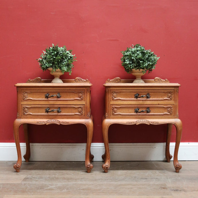 x SOLD Pair of Antique French Oak Lamp Table, Two-drawer Bedside Cabinets or Hall Tables. B11554