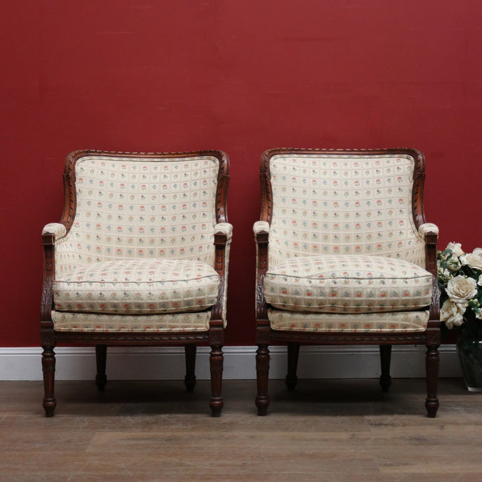 x SOLD A Pair of Antique French Armchairs, Walnut and Down-Filled Cushion Armchairs Wing Back Chairs. B11786