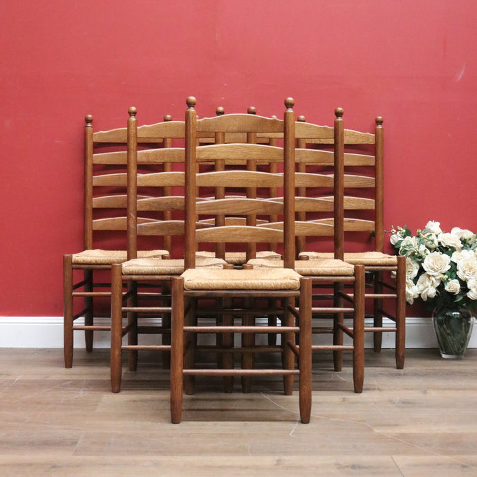 x SOLD Set of Six Antique French Ladder Back Dining Chairs or Kitchen Chairs, Rush Seat. B10943