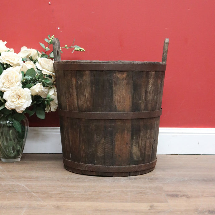 x SOLD Antique French Oak Fire Wood Bucket or Bin, Metal Bound Grape Bin, Wine Barrel B11192