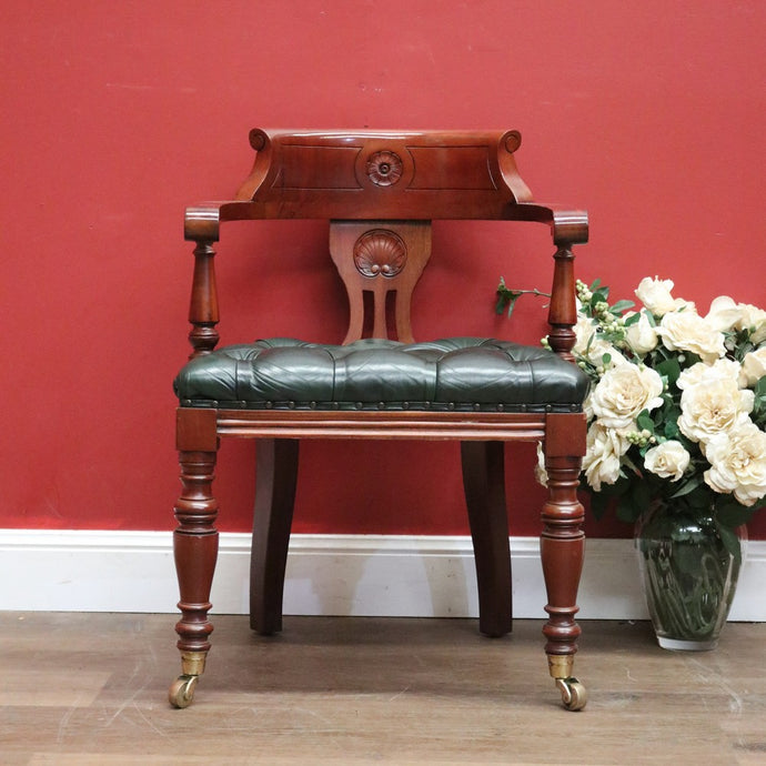x SOLD Vintage 1970-1980s Office Chair Emerald Green Leather Mahogany Button Seat Chair. B11167