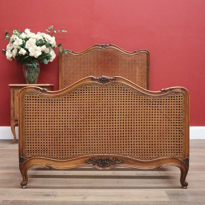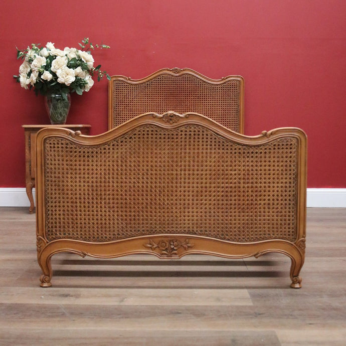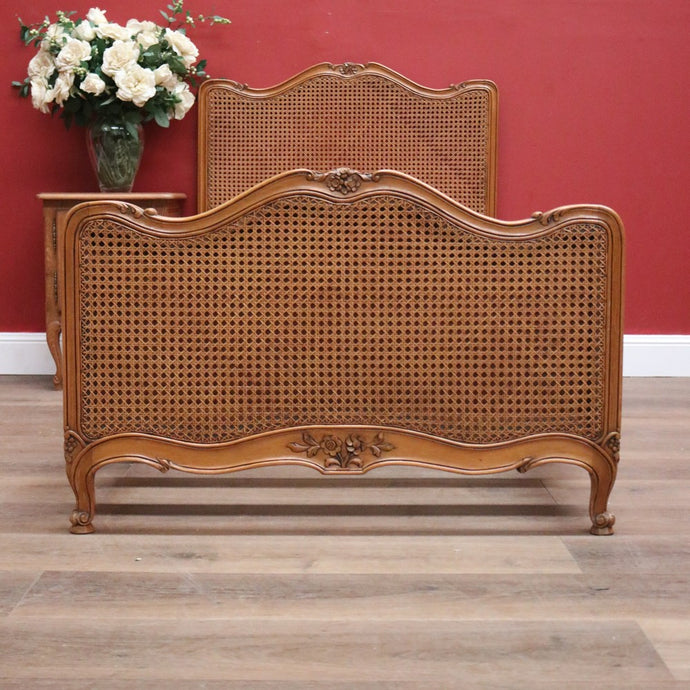 x SOLD Antique French Single Bed, Oak and Cane Bed. Bedhead, Foot, Side Rails Slats 2/3. B11265
