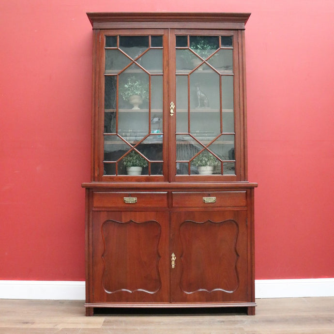 x SOLD Antique Australian Cedar Two Height Bookcase, China Cabinet Cupboard Glass Doors B11238
