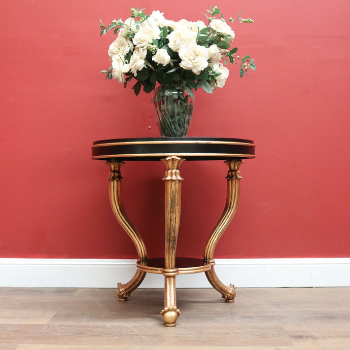 x SOLD Vintage Italian Two-tier Side Table with Tri-leg Base, Black Ebonised Lamp Table B11249