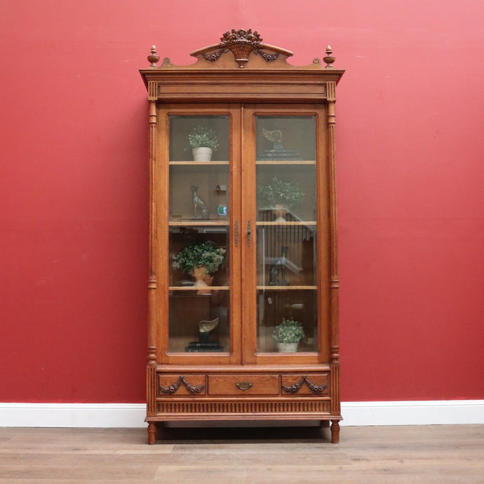 x SOLD Antique French Oak Bookcase, Bevelled Glass Door China Cabinet Display Cupboard B10865