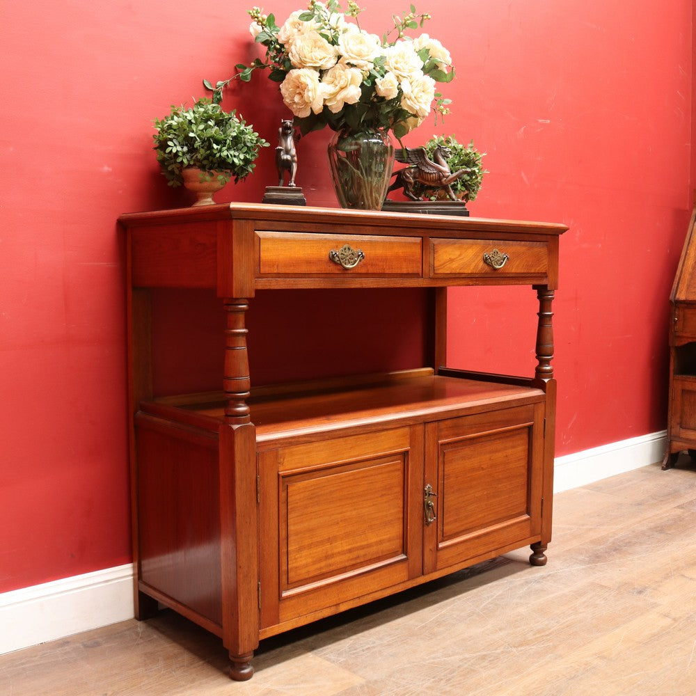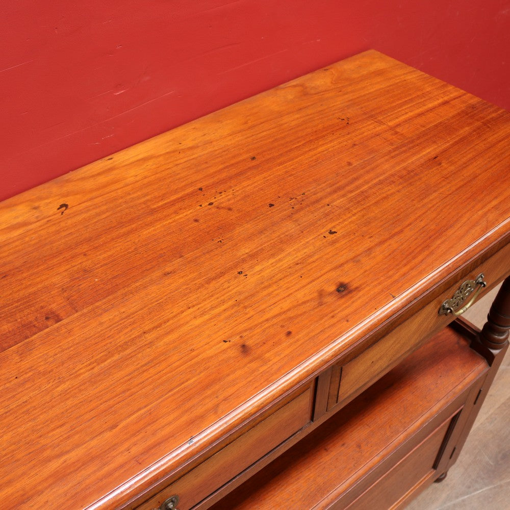 Description: Antique Australian cedar servery, also known as a dumb waiter. Made from richly toned Australian cedar, this versatile piece offers both charm and practicality.