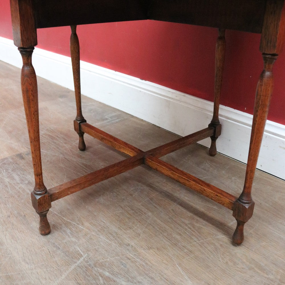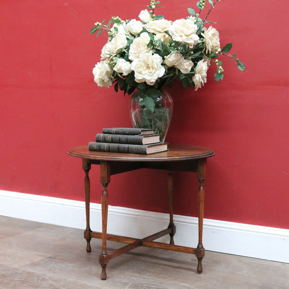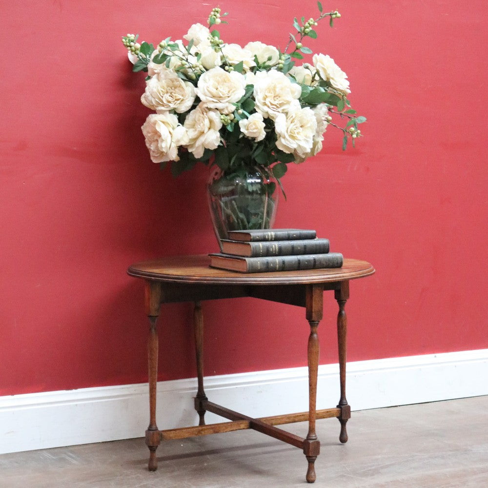 Description: An antique Australian Maple lamp or side table featuring a fixed gate leg style base with an X stretcher and finely turned legs. The round top features a simple decorative border, giving the piece a classic, versatile look. A charming table that works beautifully beside a chair, sofa or as an accent in any living space.