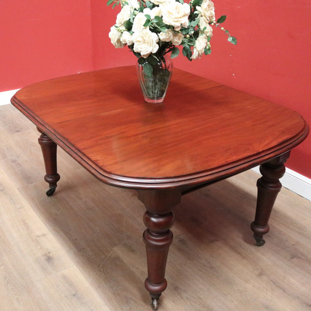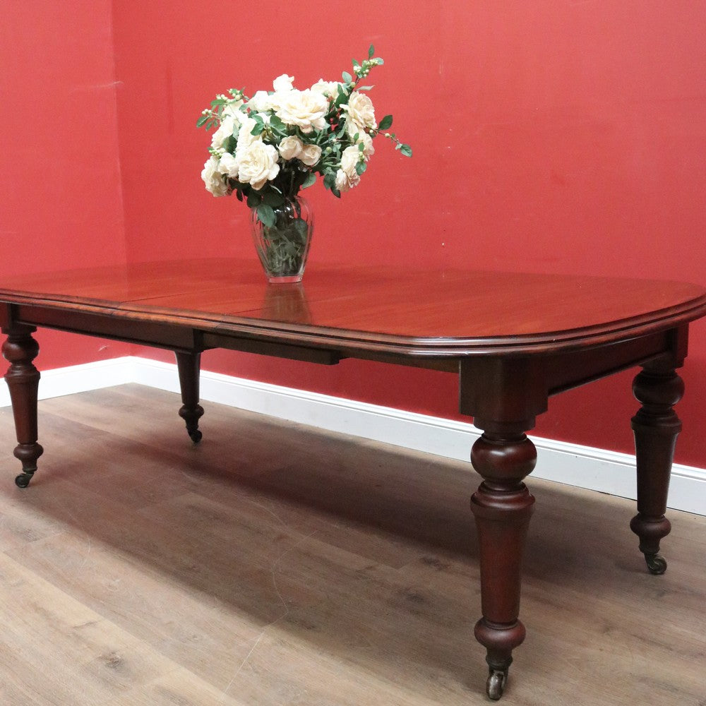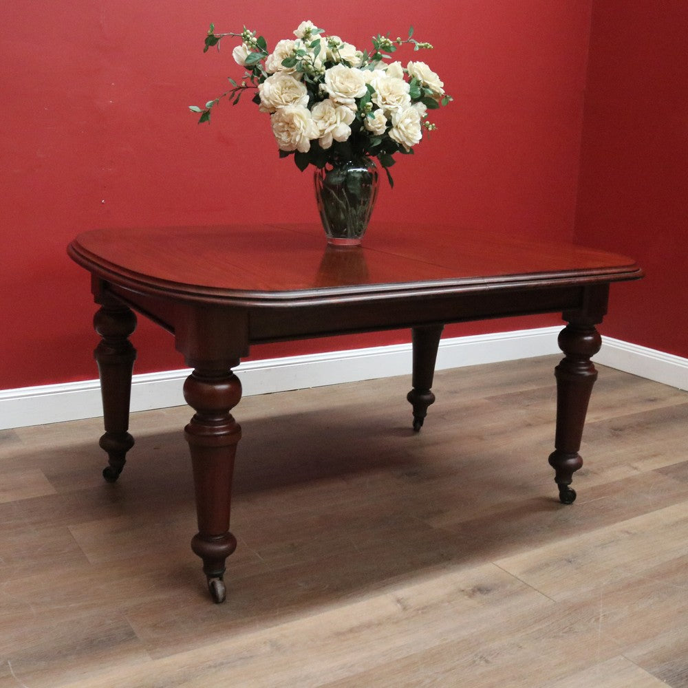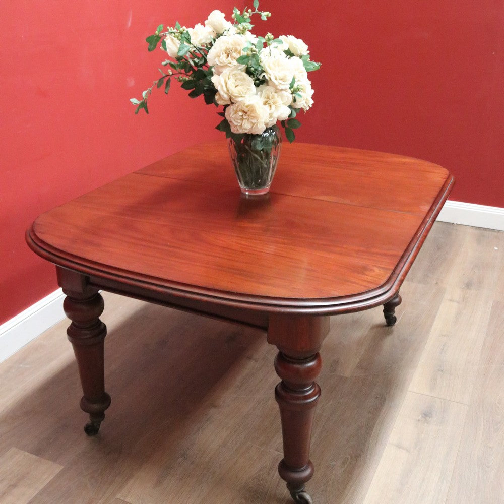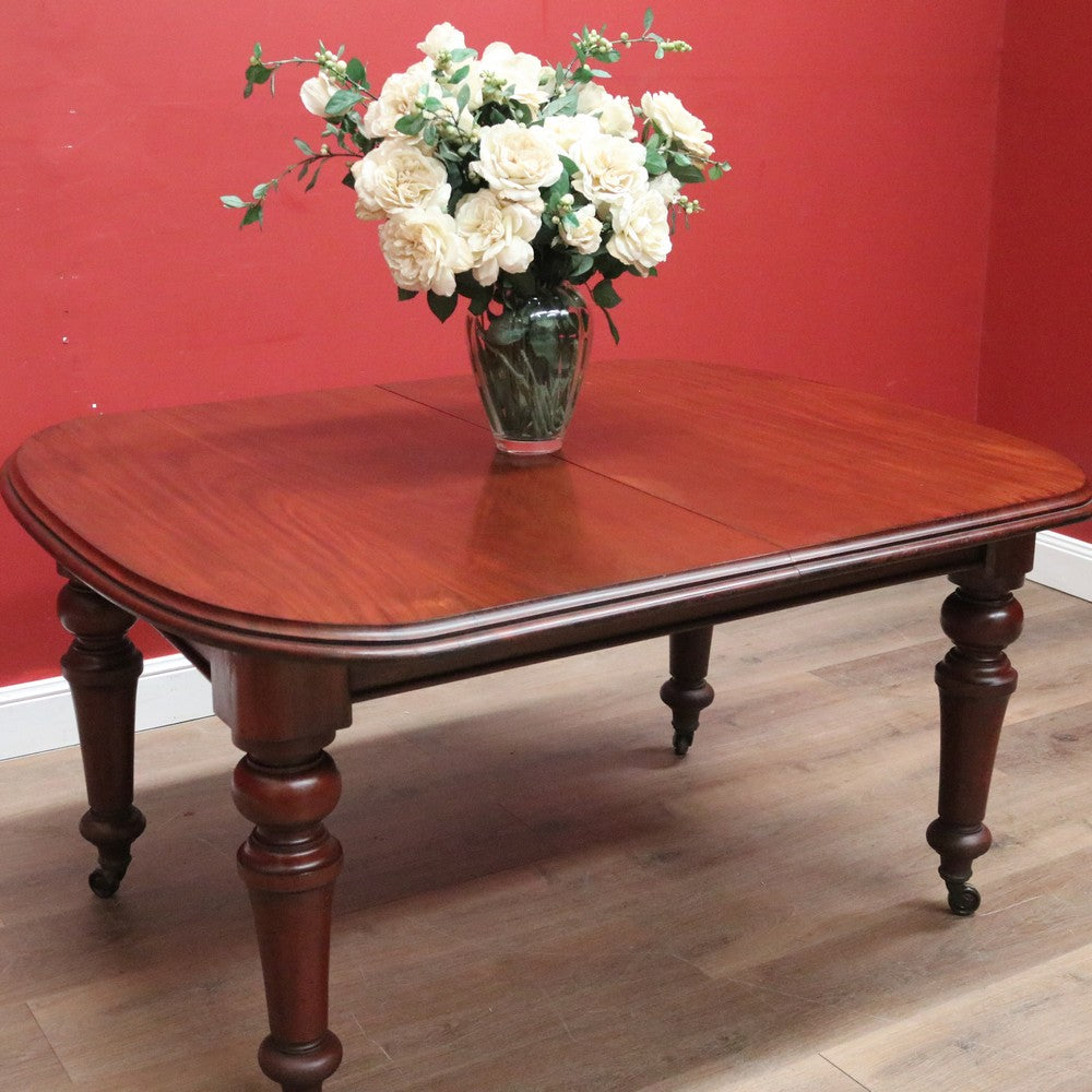 Description Ready for your next dinner party or family gathering is this beautiful antique English mahogany two-leaf extension table, which easily extends from 147 cm in length to 230 cm by way of its Joseph Fitter telescopic winder and crank.