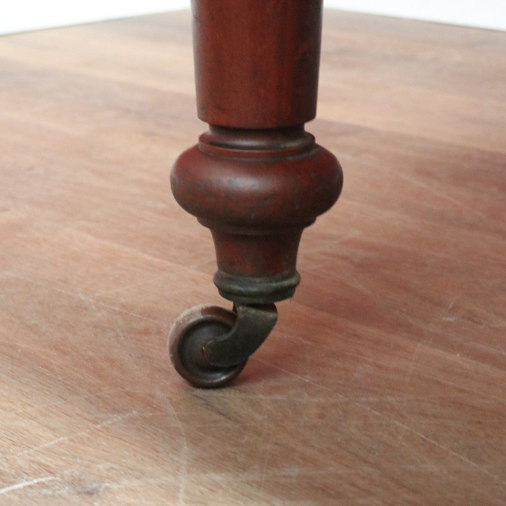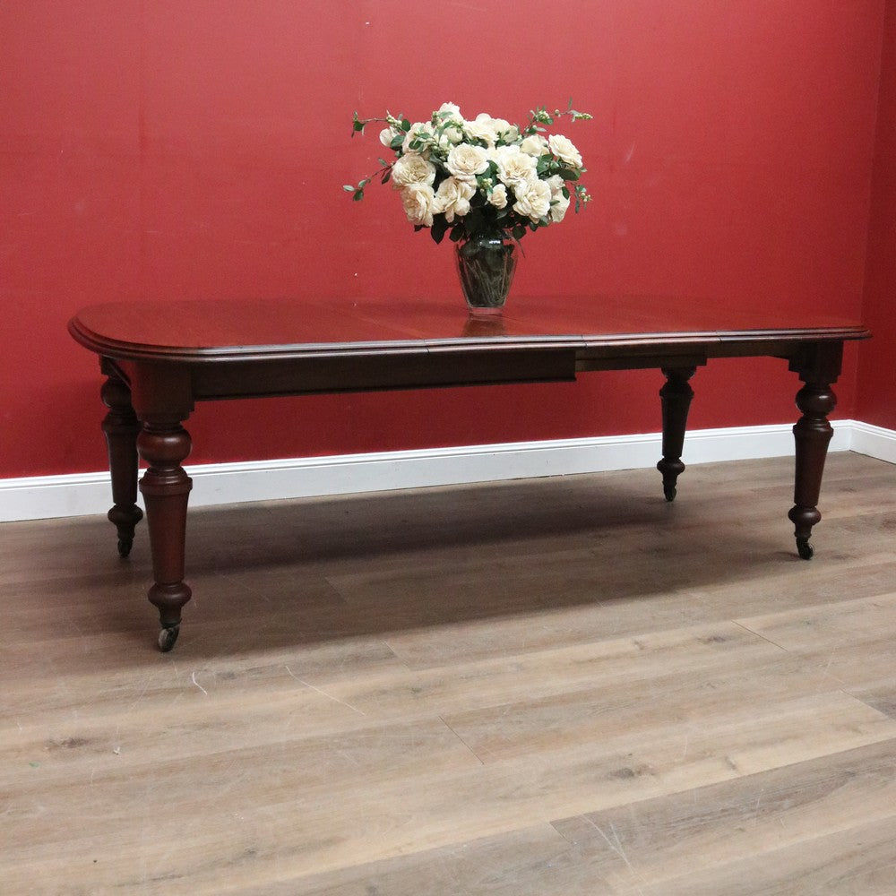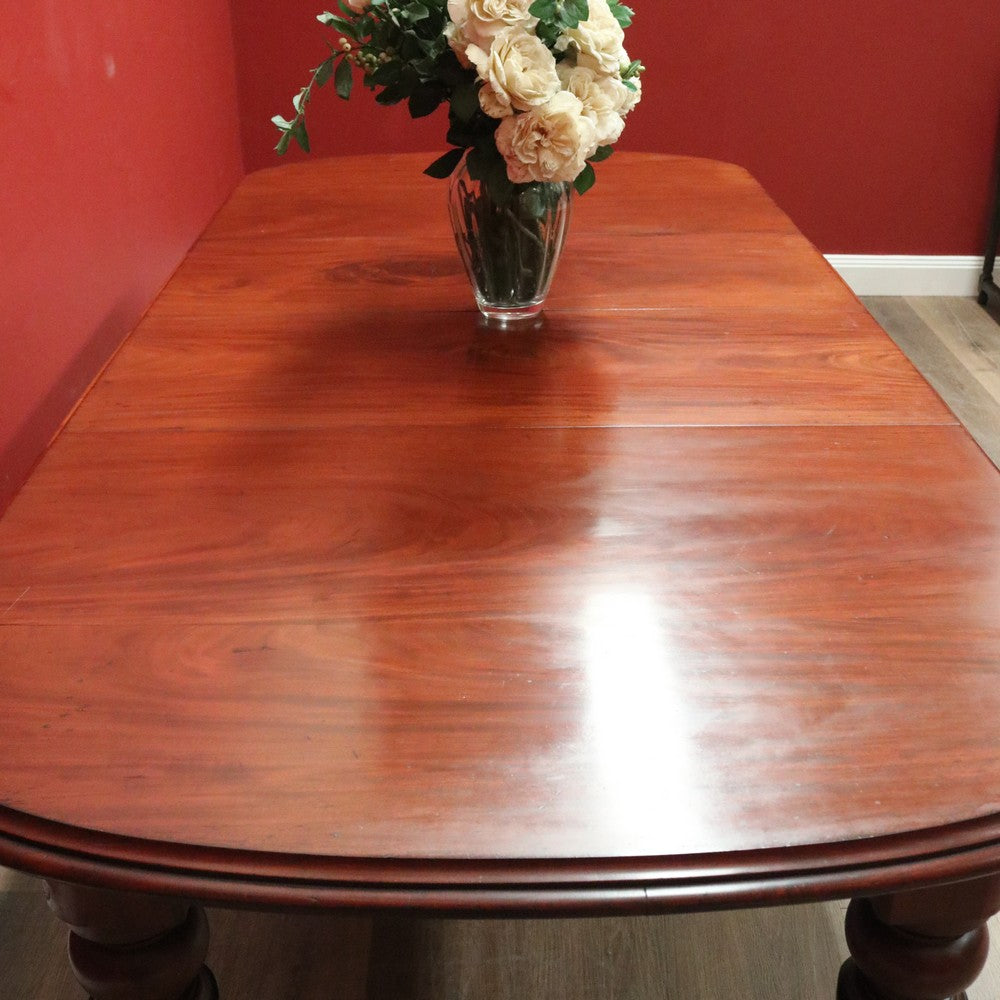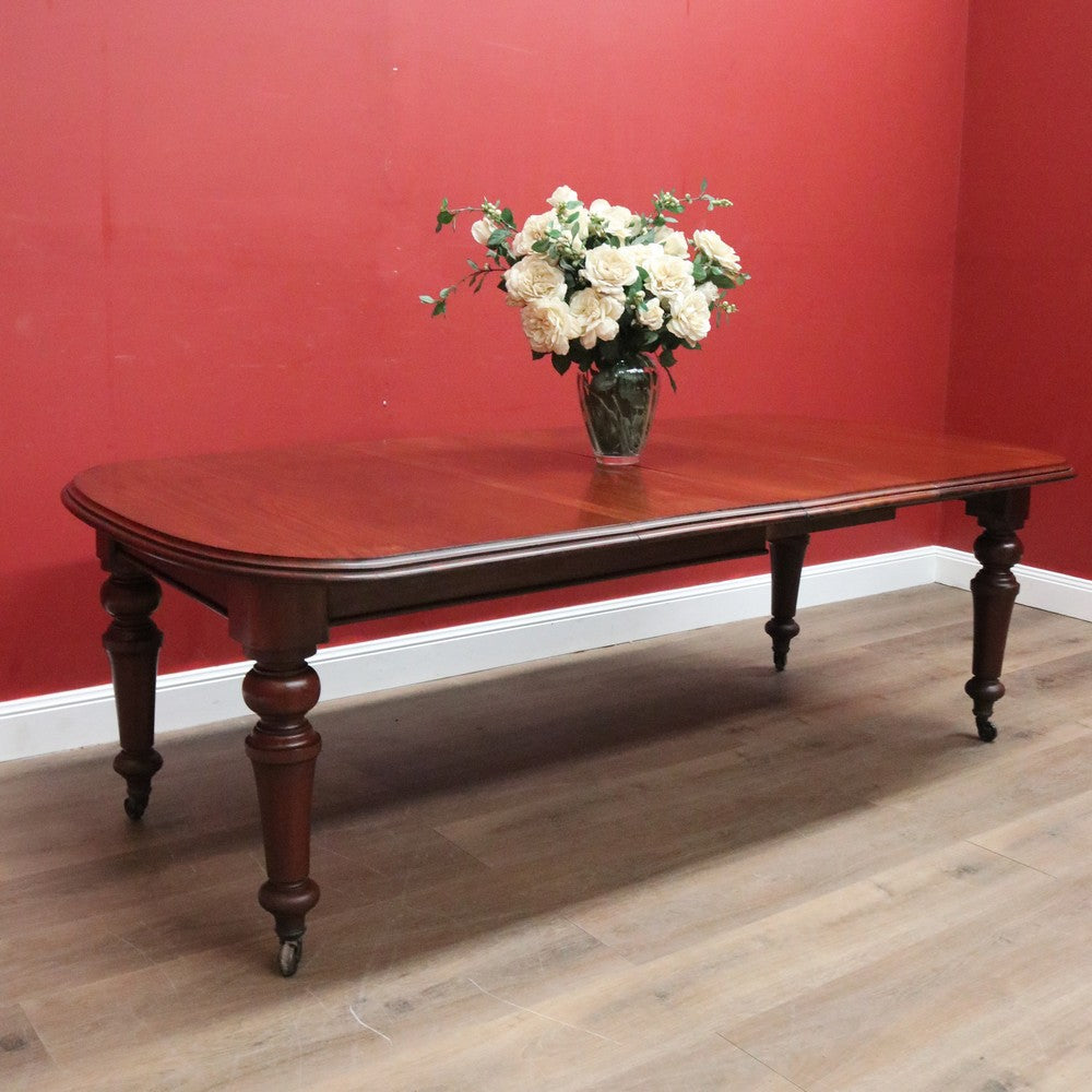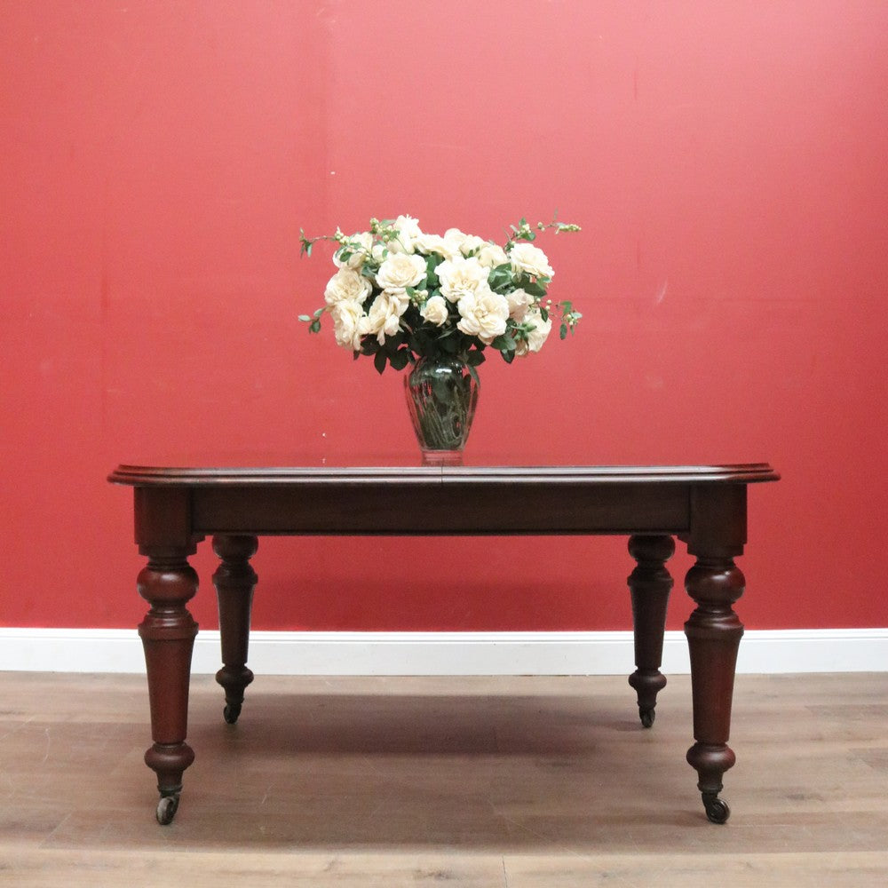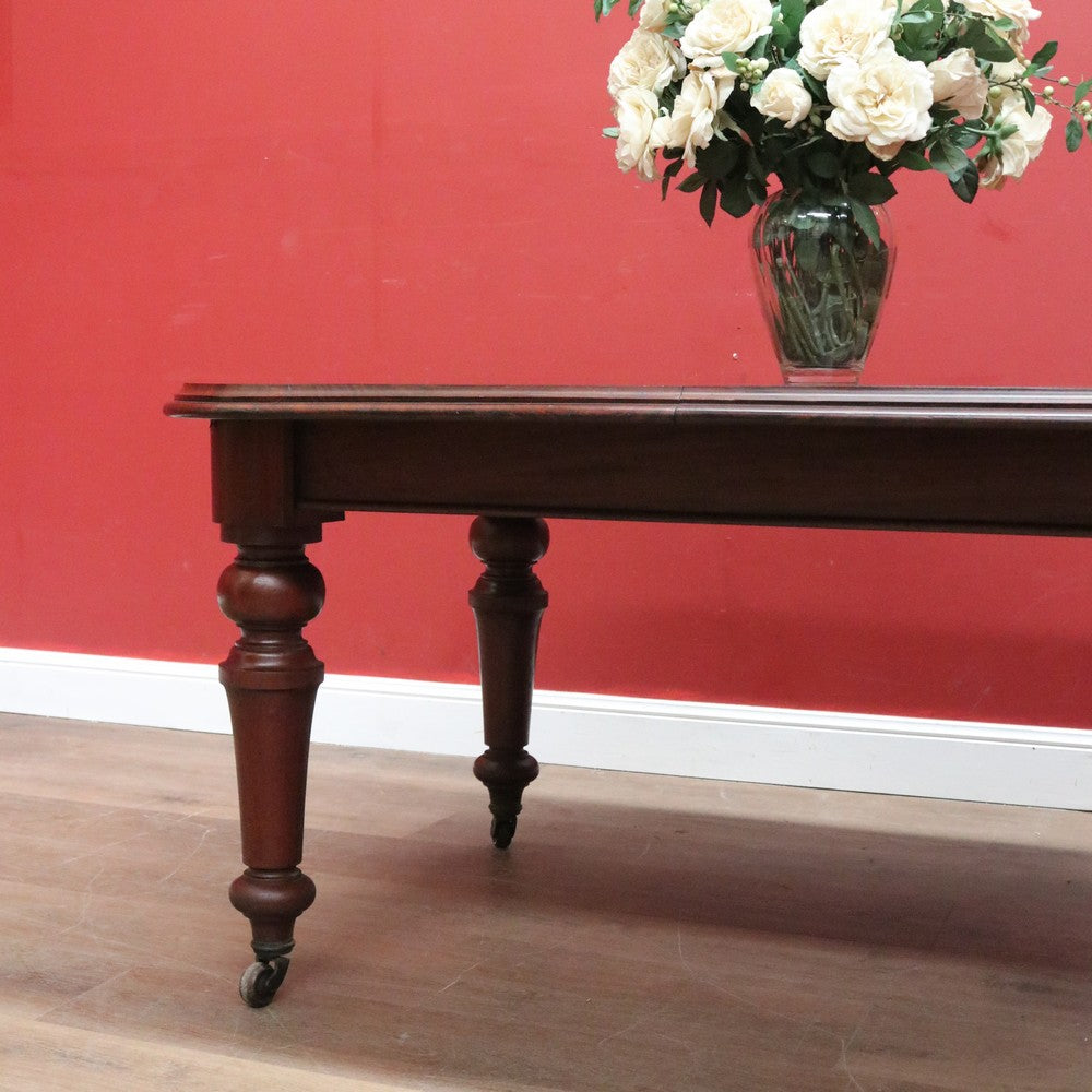 Description Ready for your next dinner party or family gathering is this beautiful antique English mahogany two-leaf extension table, which easily extends from 147 cm in length to 230 cm by way of its Joseph Fitter telescopic winder and crank.