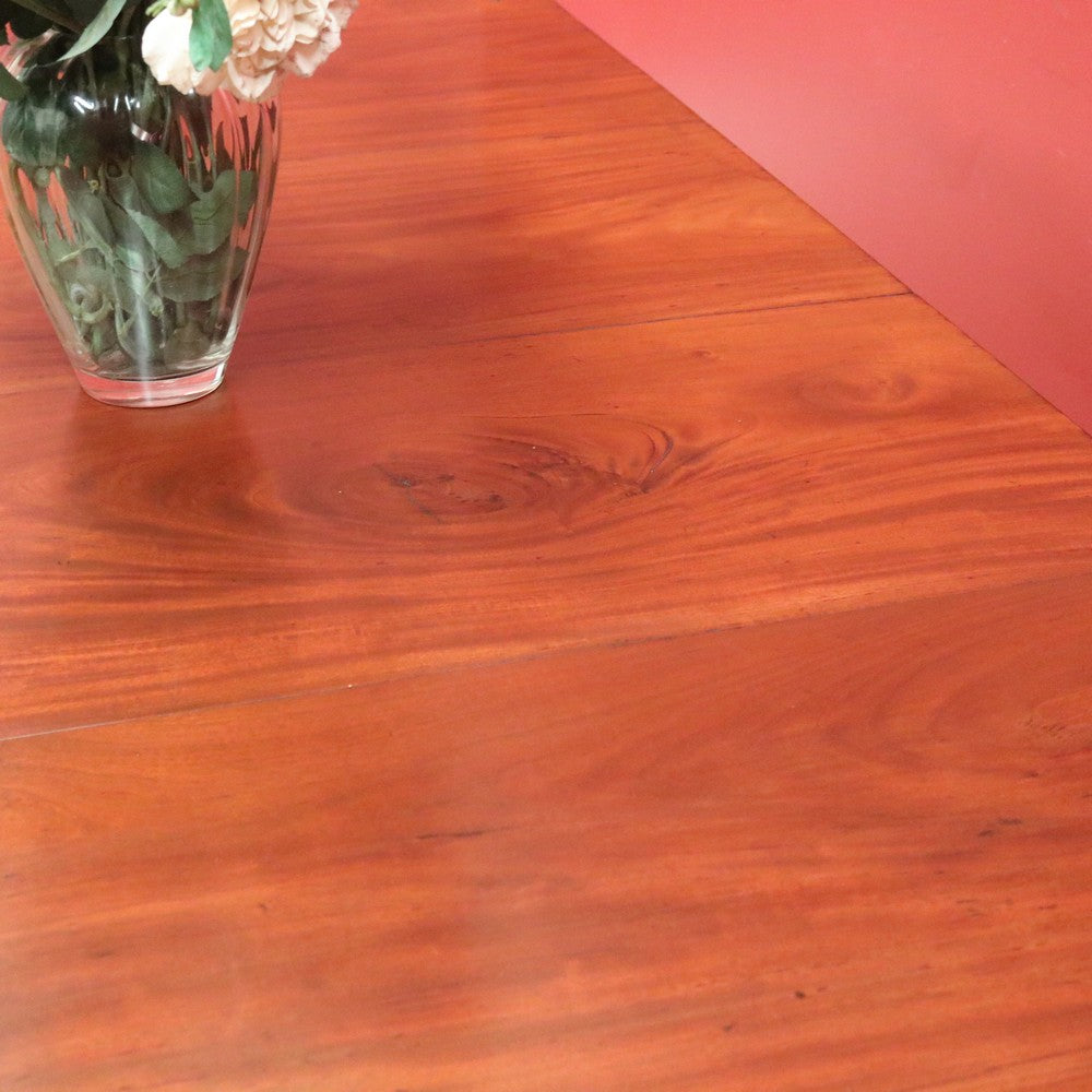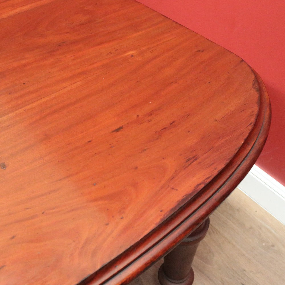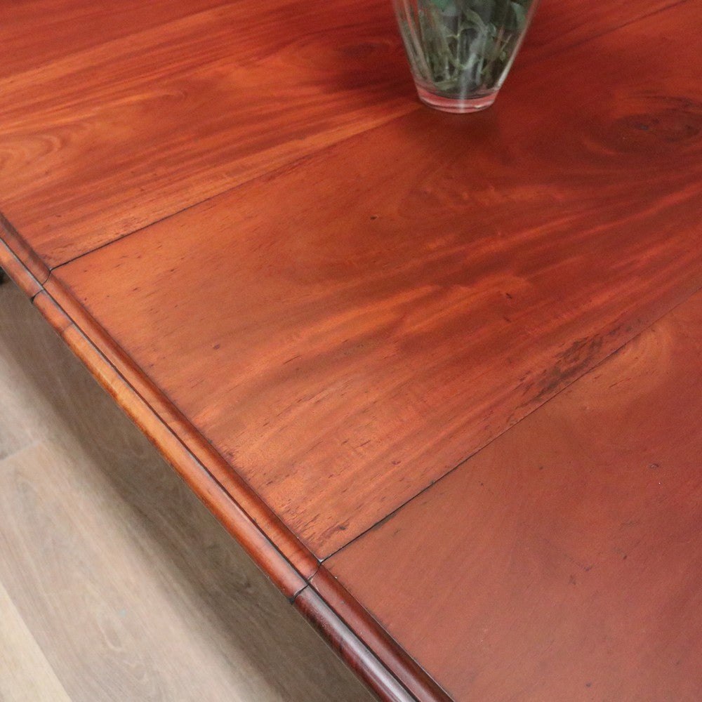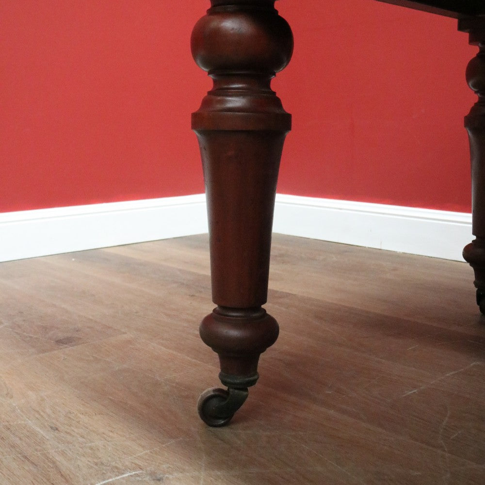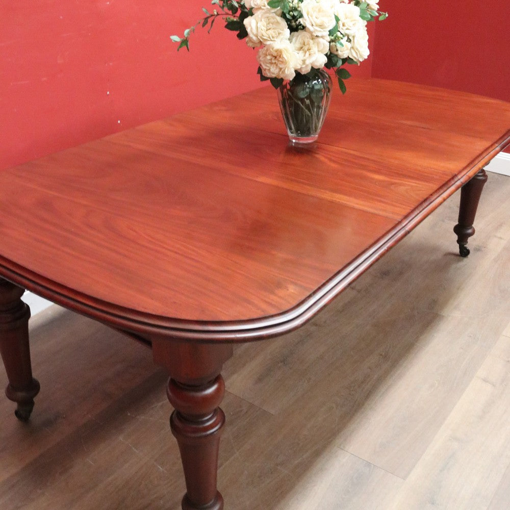 Description Ready for your next dinner party or family gathering is this beautiful antique English mahogany two-leaf extension table, which easily extends from 147 cm in length to 230 cm by way of its Joseph Fitter telescopic winder and crank.
