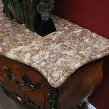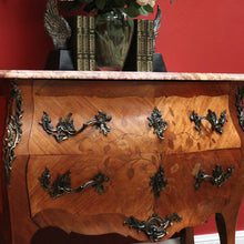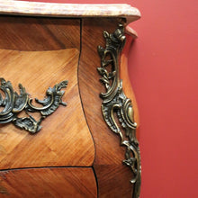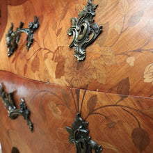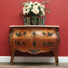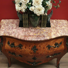 Description Two large deep drawers with floral marquetry inlay. Brass mounts and handles, rich colours through the marble top. Drawers open and close with ease, of the highest quality.