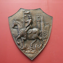 Description A wonderful wall hanging Shield in embossed copper of a knight and horse, and Castle.