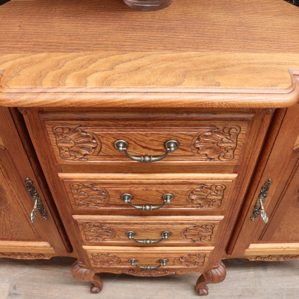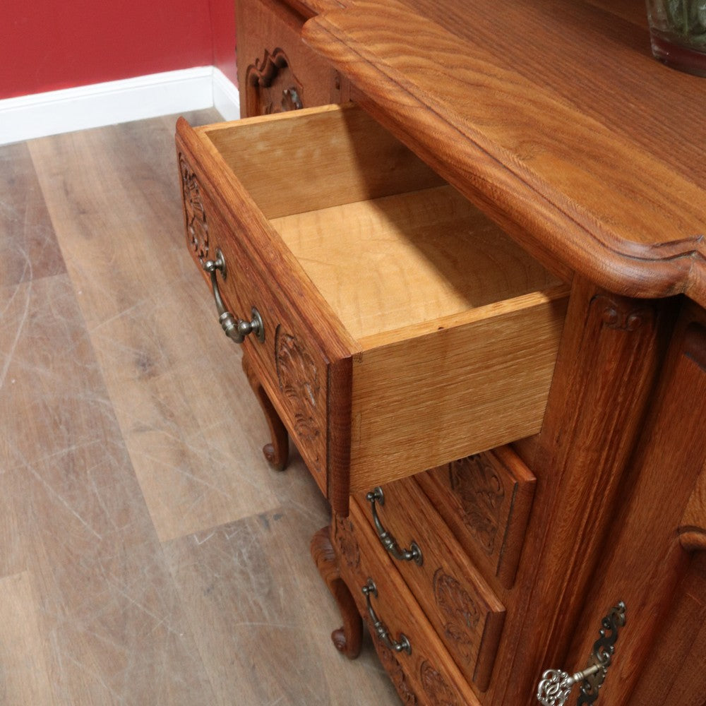 Raised on elegant French scroll cabriole legs, the sideboard has a refined silhouette and strong decorative appeal. A statement piece with classic French presence, suitable for a range of interiors.