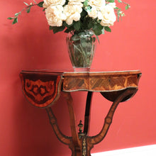 Description There are light and dark shades of walnut inlay into the top and apron, gilt brass mounts to the birdcage pedestal, and feet. There is a single drawer to the apron and pressed brass trim to the table top and drawer. The table extends with two drop leaves to the sides.