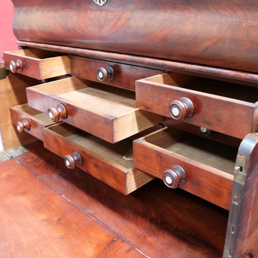 Description: An English Biedermeier secretaire chest crafted in mahogany with elegant Mother-of-Pearl escutcheons. This beautifully proportioned piece has aged gracefully, showing the rich patina and character that only time can bring.