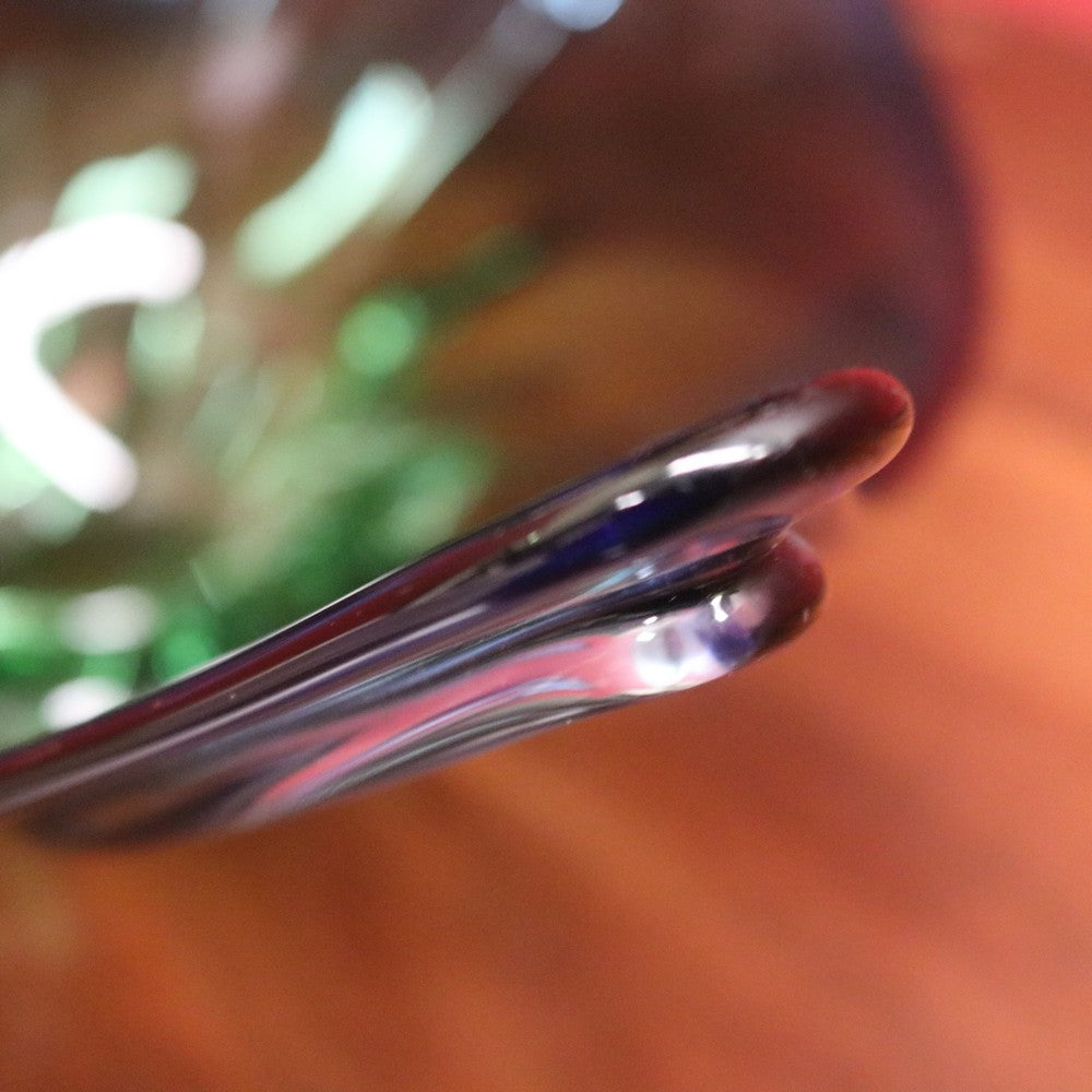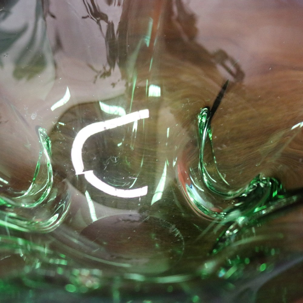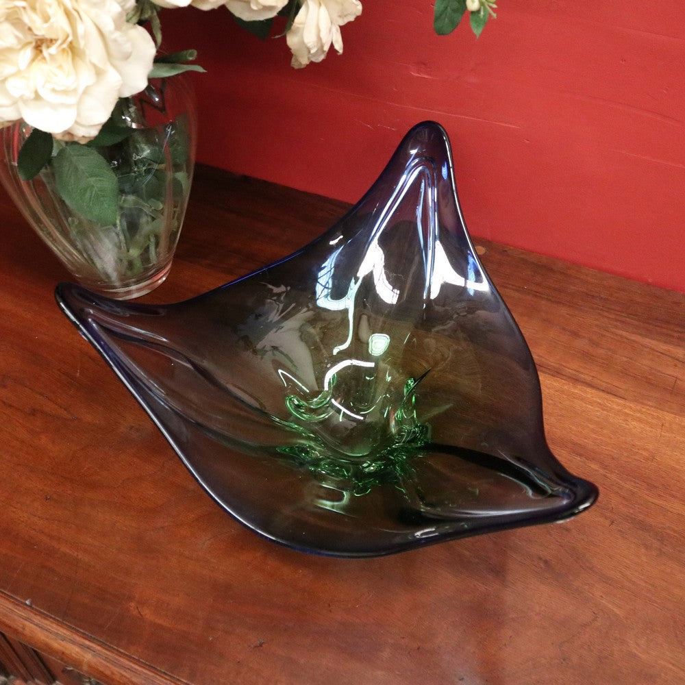 Description: A stunning Mid-Century Val St Lambert art glass vase featuring a captivating transition between deep blue and green hues. Expertly crafted in a striking triangular form with raised points, this piece showcases the brand’s signature quality and creativity. Both decorative and functional, it’s a beautiful statement of mid-century design—perfect for collectors or as a standout accent in any interior.