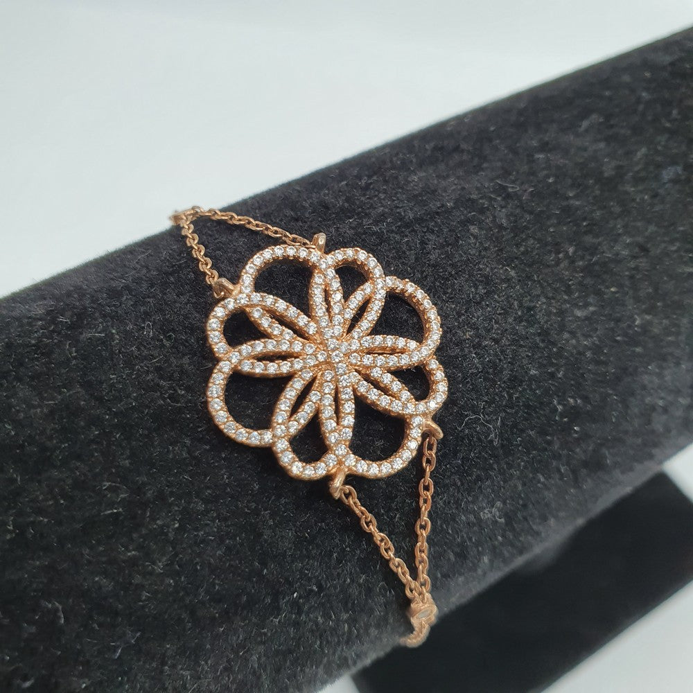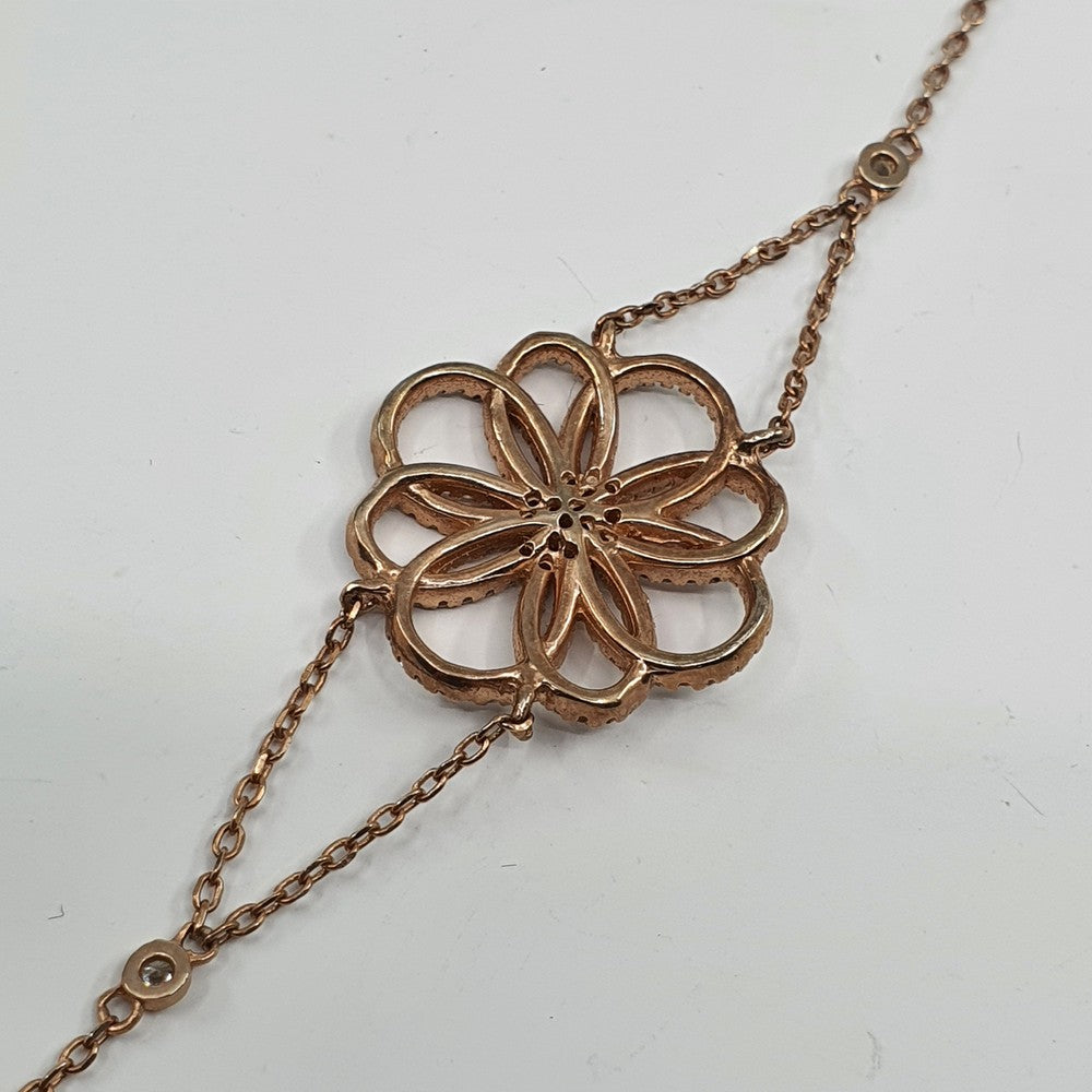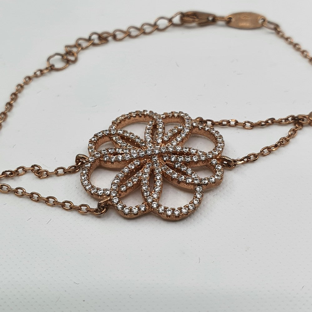 Sterling silver bracelet, rose gold plated, set with cubic zirconia, stamped 925 Milano. 4.5 grams.